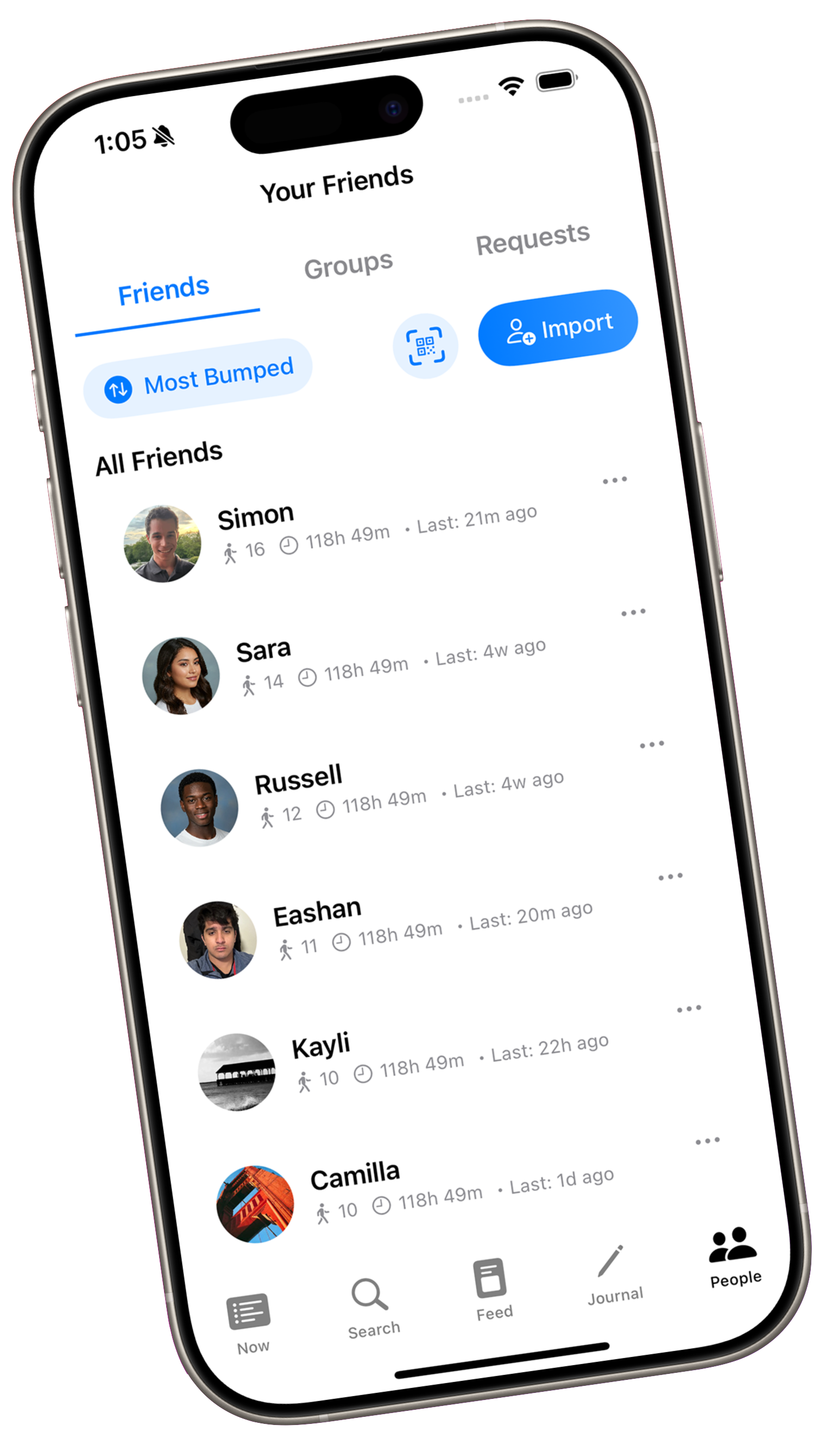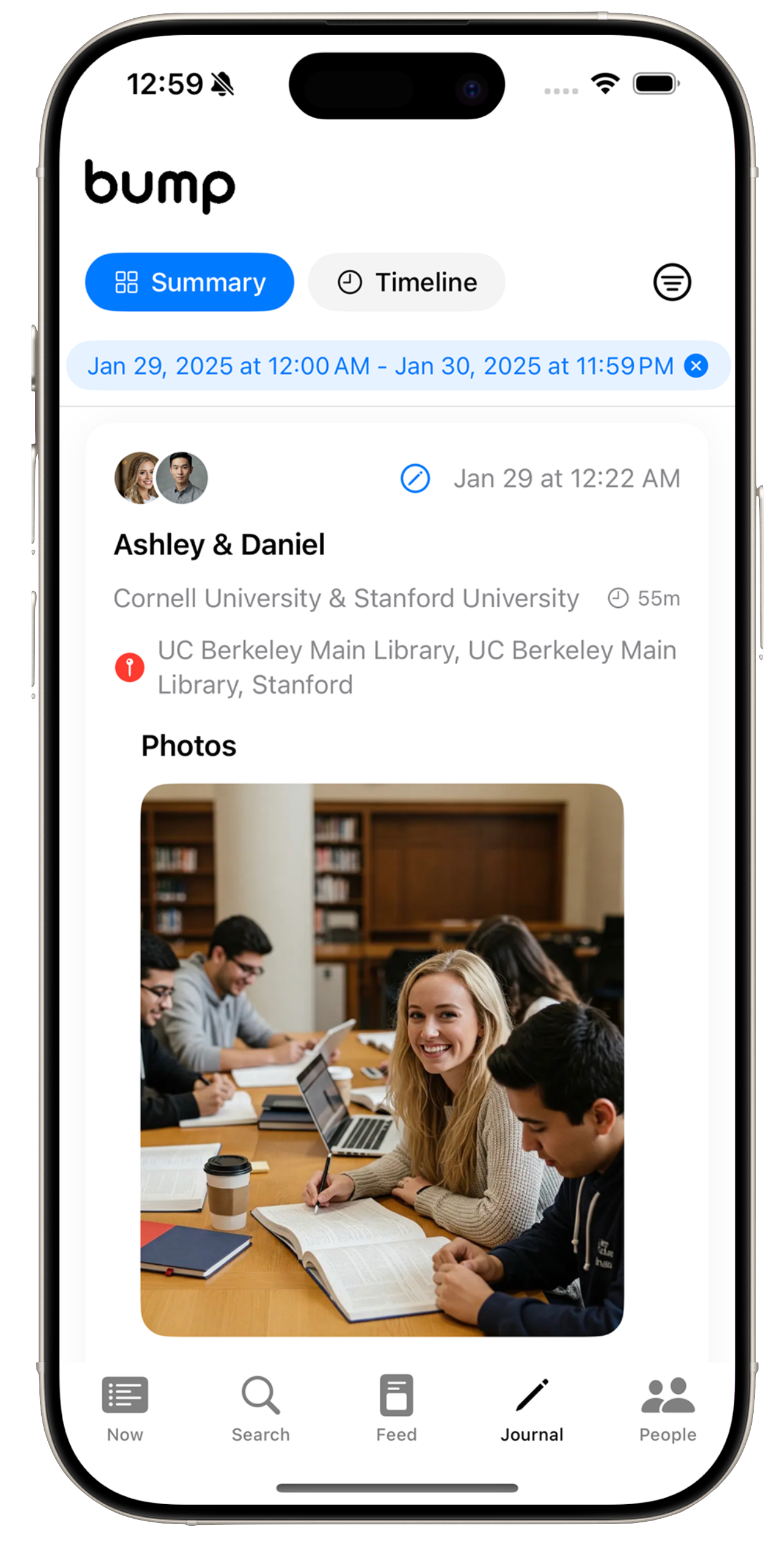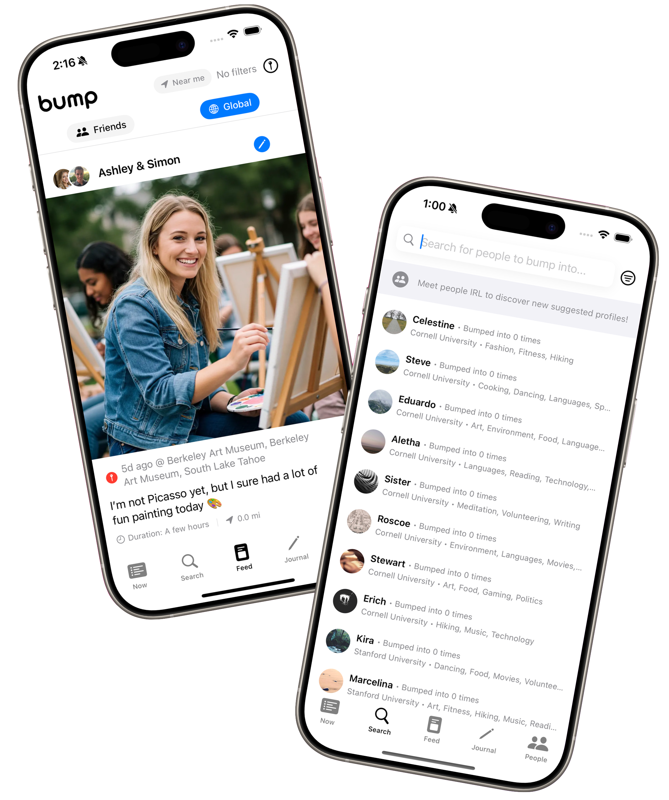 Unlike traditional social media that keeps you scrolling, Bump celebrates and enhances your real-world connections. It's a living journal of your actual social life, not just your online presence.