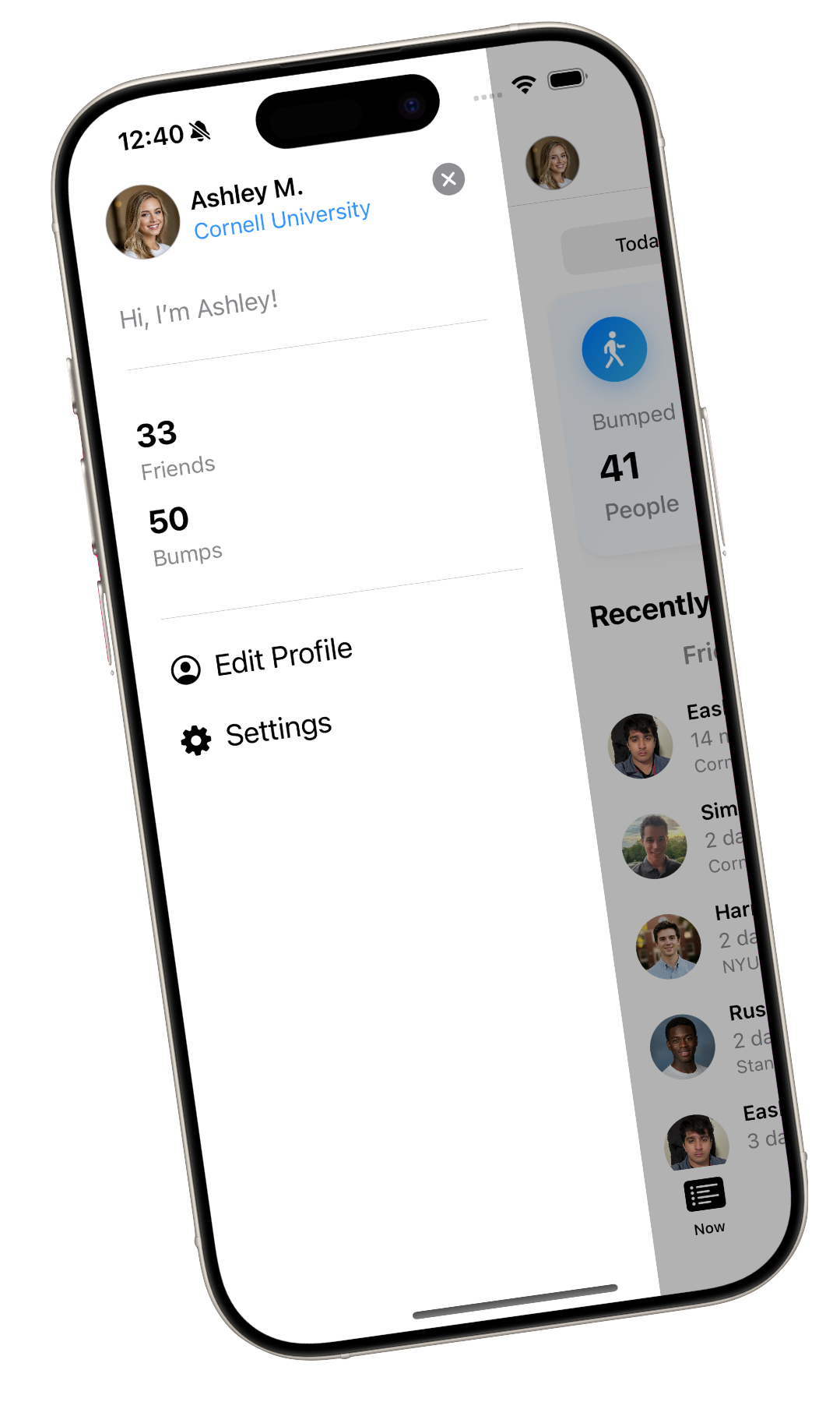 Yes! You can discover people nearby with mutual friends or shared interests. Our matching feature lets you request to meet new people, but connections only count once you've met in real life.